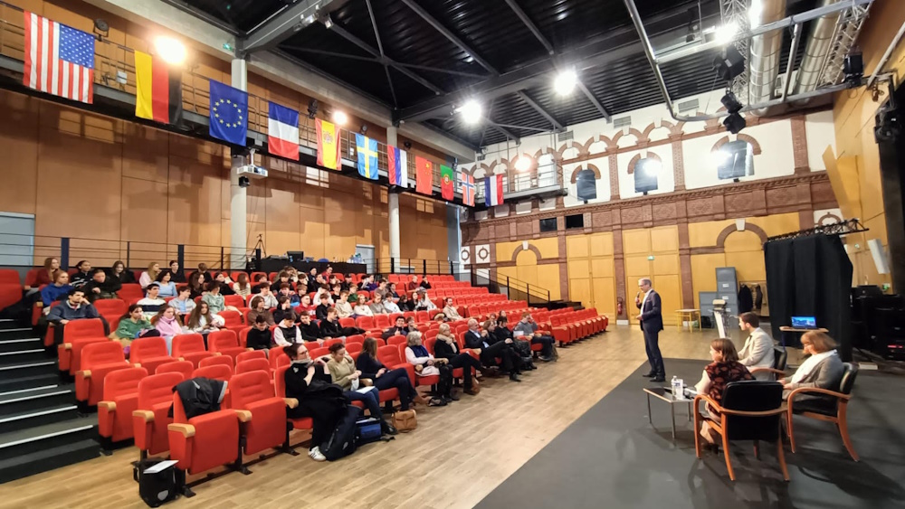 Das Publikum, bestehend aus der Schulleitung des Lycée International, Freunden der deutschen Abteilung sowie insbesondere den Schülerinnen und Schülern, verfolgte die Vorträge mit großem Interesse und beteiligte sich anschließend aktiv an der Diskussion.